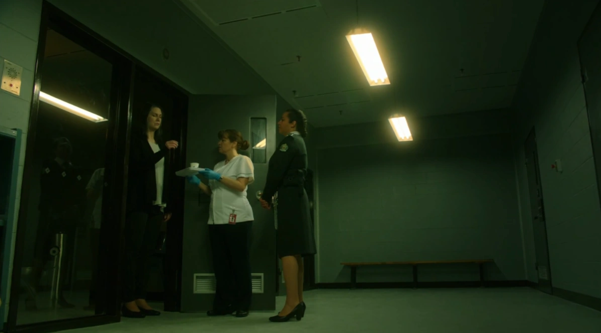 As Kim is in medical she is seen trashing about as Nurse Lee Radcliffe tells officers to keep her still as she tries to sedate her, Linda said that it is 'easier said then done' as she is heavily affected by drugs. When Radcliffe finally manages to sedate Kim the officers sigh in relief as Vera comes in and Will walks over to get and Will says that they must order a ramp as it is the third meth freak out in a month. Vera refuses to order one and tells Will to put Kim in isolation to sleep it off. Will who can't believe it says that all Vera is doing is hiding her, Vera says that is precisely the point before the media is coming in the next day and they don't need to see Kim in that state. When Vera leaves Will talks to Bea who asks what they are going to do with Kim because Doreen is 'freaking out' Will rudely tells Bea that Doreen is the least of his problems and to go back to her unit as he doesn't give a 'fuck', Bea ends up leaving.