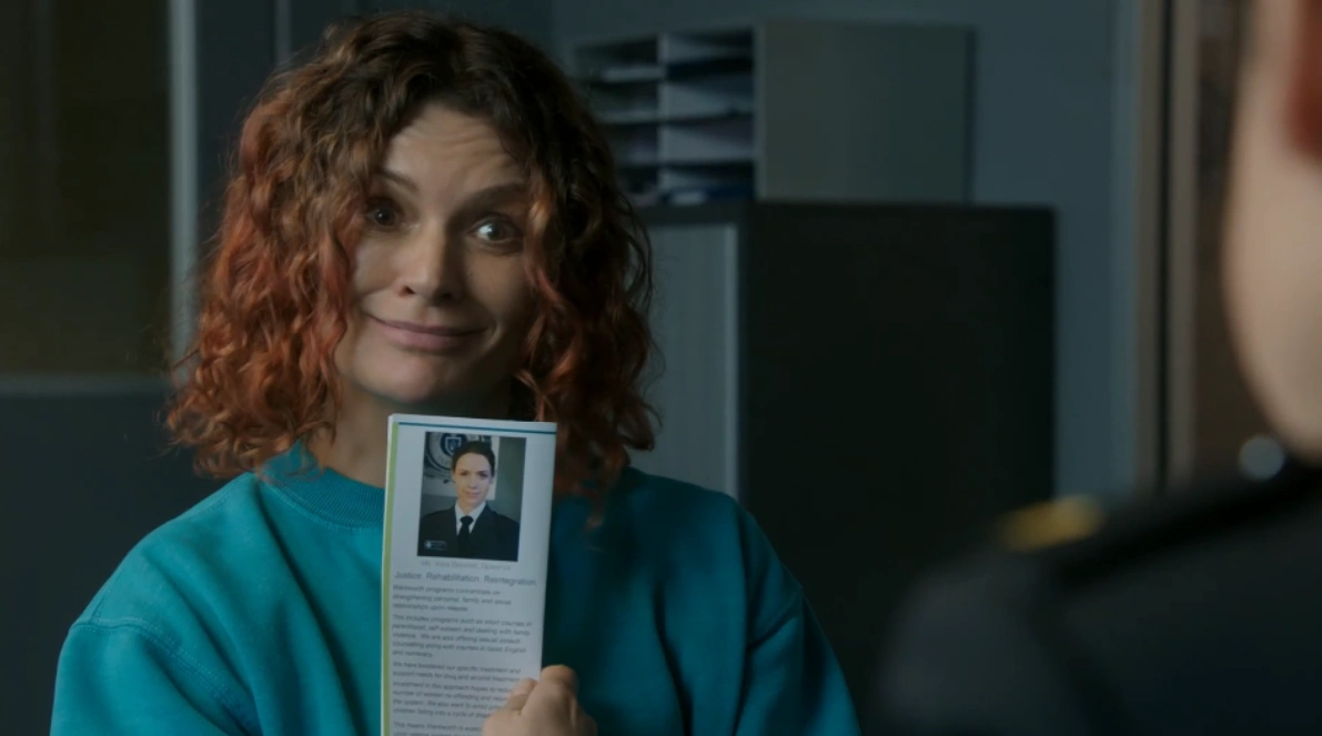 Bea is in the governors office as she looks at the art on the wall, Vera says that it is Prisoner Art Therapy and Bea jokes 'have they recovered' Vera chuckles and tells Bea to sit. Vera asks Bea how is she settling in. Bea says it is 'better then the ritz'. Vera tells Bea that she is going to be a tough but fair governor as she has worked very hard over the last couple of months with the programs that she has introduced and she will see them through but she needs Bea in her corner and to be able to work with her as Top Dog. Vera reveals that in the coming days the new parts of the building will be opened and there will be some attention from the media about it and Bea holds up one of the pamphlets and says that it is to 'impress the press' Vera agrees and says that part is the fluff but everything else is very real and needed for rehabilitation. Bea then says the programs have "clearly" helped Kim Chang, and Vera says to Bea that she is the only Top Dog that has never trafficked drugs and that the women need her, Bea says what if she can't be stuffed to do it, and Vera tells Bea that there are so many young women in the prison who are at risk. Bea agrees and makes a plea that the women want conjugal visits and Vera says that in the spirit of cooperating she will give the idea to the board on the basis that there isn't any trouble with the media. Bea tells Vera that if there is it won't be from her.