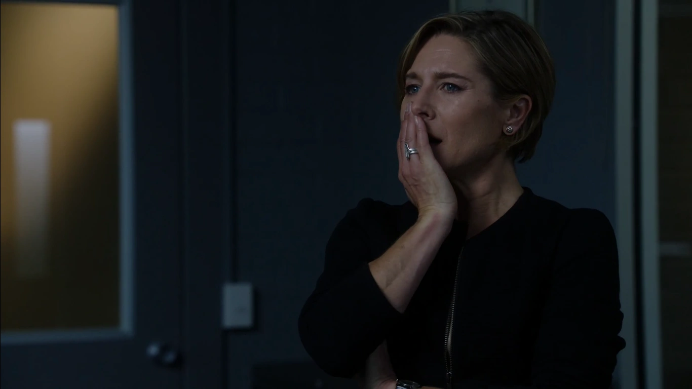 Franky says to Vera that Ferguson knows who killed Mike Pennisi and Vera sarcastically says all that have to do is ask Ferguson for a name. Franky says it is the same person who killed Jesper for her and Vera asks her if she seriously thinks that Ferguson framed her for murder, and Franky says yes as Ferguson has made an art form of 'fucking up people's lives' and Will agrees by saying that Ferguson framed him for killing Harry Smith (Wentworth). Vera asks what Franky wants her to do, and Franky asks her to pull her phone records so she can get her lawyer on it, Vera says that the department doesn't go on fishing expeditions but she can see what she can do. As Franky leaves Jake tells Franky to leave Ferguson alone and Franky tells him that of course she will. As Franky and Will leave the office Franky asks what has gotten into Vera as she has also been messed around by Ferguson. Will tells Franky that Vera after Bea's death won't be sticking her neck out for anyone but Will says to Franky he believes her and says that she needs to calm down and everything will sort itself out. As Will opens the door Franky says that he should've run years ago and Will jokes and says where would Franky be then.