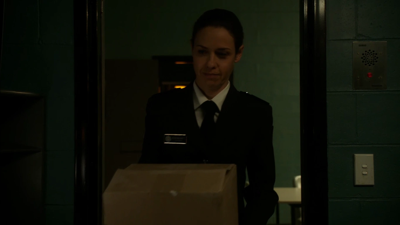 Vera walks to Joan's cell with a box and as she stands in the doorway Ferguson says hello and sees the box joking that 'it isn't her birthday' Vera puts the box down and Joan says that she will not give Vera the satisfaction of asking what's in the box she 'is mistaken' and she then asks what is in the box. Vera reveals to Joan that she has just come from a board meeting one which she would have found 'interesting' and Joan says she doubts it. Vera reveals that an officer resigned Brenda Murphy and asks if she remembers her, Ferguson says she does always 'skiving off for a smoke'. Vera tells her that she "confessed" to losing her swipe card the day Ferguson killed Bea Smith and she used it to get to no-man's land. Ferguson says that proves nothing. Vera then tells her that it quashes her self defence claim as Vera continues and says that Smith didn't collude with an officer and didn't pay anyone off. Vera continues and says that when her and Will found Ferguson, Bea was dead and Ferguson was standing over her holding a shiv. Ferguson then says to Vera that she thinks she is 'very clever' and Vera just says she believes the uniform size is right before walking out of her cell.