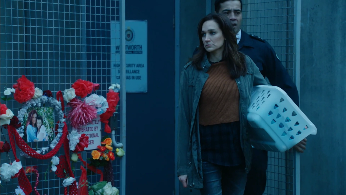 Will tells Franky that he had really hoped it was another Franky Doyle and Franky says that she's one of a kind, Will says that at least she hasn't lost her sense of humour and she says she's just lost everything else. Will tells her that there is a spare cell in H1 if she wanted to move back there. Franky refuses and tells him that was Bea's cell and she doesn't want to do that, Franky asks to be placed in another unit and Will asks why, Franky says that it is just better that way. Franky tells Will to just say what he was thinking that 'she blew it' and is 'a disappointment'. Will tells her that he really thought she would make it as she had worked her arse off to get out. Franky tells him so much for his 'precious system' Will interjects and says that the system didn't murder Mike Pennisi and Franky says that she didn't kill him. Franky tells Will that the system has him by the balls as he had the chance to get out and he didn't take it. Bridget comes down the hall and sees that Franky is being processed by Will, and she stares at her in disbelief, Vera spots Bridget looking and takes her away quickly.
