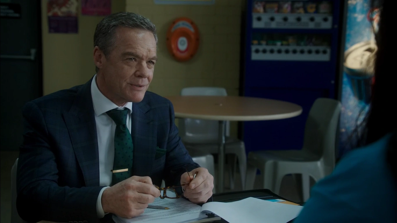 Boomer sees Sonia's lawyer Michael Armstrong as he introduces himself Boomer says to him that Sonia is dead and he says that he knows and Boomer says that she doesn't want to talk about it., Michael says that Boomer must've meant a lot to Sonia as she contacted him a month prior to organise something with her sentence, Boomer asks if it is like an appeal, Michael agrees. Boomer tells Michael that she doesn't have any money for that and Michael says that Sonia had already covered the bill and says that Sonia must've cared a lot for her. Touched by this Boomer wipes a tear away and Michael says he is sorry if he upset her and Boomer says that she is good and Michael begins talking with Boomer who is excited at the prospect of leaving prison.