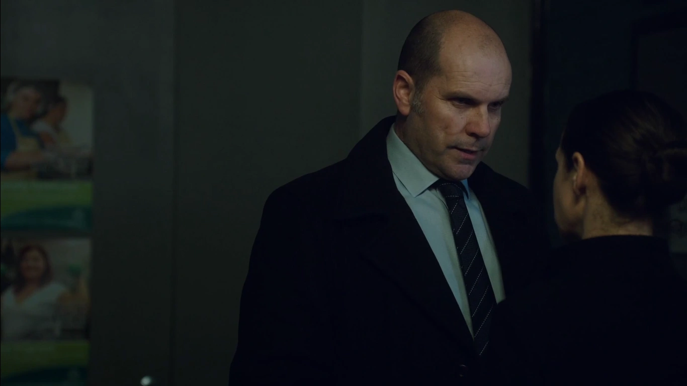 Vera returns to the prison as she goes through the visitors centre she sees Detective Collins standing unimpressed as she walks through security where he tells Vera that the police weren't aware that she had left the prison as Vera says that she wasn't aware that she had to tell anyone, Collins tells her that she should tell them her movements from then on and Vera smirking and asks if she is a suspect as Collins looks around and says that the police have already established that Ferguson's accomplice was a senior officer, Vera then says is he accusing her and he says that they can discuss that during her interview and he walks away as Vera shakes her head and grabs her stuff before she checks her phone to the message 'see you at 7PM..' Vera rolls her eyes as she walks away.
