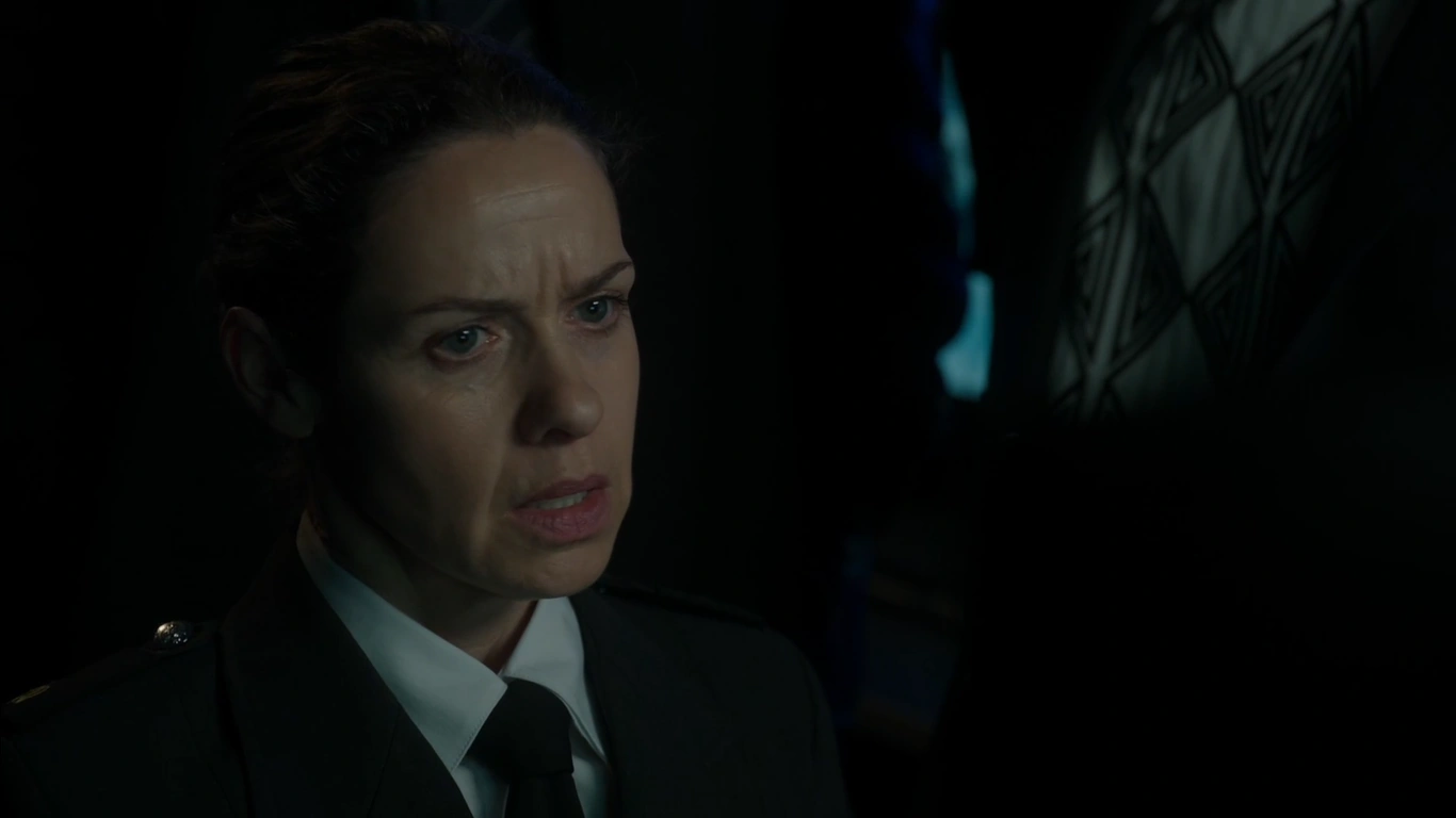 Vera is in her office nervous as Linda is escorting Detective Hydari & Senior Detective Collins to her office and she radios it in confirming that she is escorting them now, Vera thanks Linda as Will asks what the police are doing back and Vera shrugs not knowing, Vera tells Will that he will now have to chair the staff meeting and tells him to go, as he does, Vera manages to take a breath and sit down as seconds later Linda lets the police in as Vera sits down. Vera tells the detectives to take a seat and asks them how she can help, Collins then says that they found a body during the night after a tipoff and they believe that it is Joan Ferguson, Vera feigning shock repeats "Joan Ferguson?" as Collins says that forensics will be able to confirm who it is in the coming days as Hydari places her tablet on the table and says that the body is the same height and in a prison issue uniform and was found in the same box used by Franky who also escaped, Hydari then says that the bloodied scratch marks conclude that she was buried alive and Collins says that the evidence is clear that someone on staff helped her escape and then murdered her, Vera says that is impossible and asks where the tipoff had come from, Collins confirming that it was anonymous and says that all the officers will need to be re-interviewed, Vera says of course and they both stand up and leave, Vera is less then impressed.