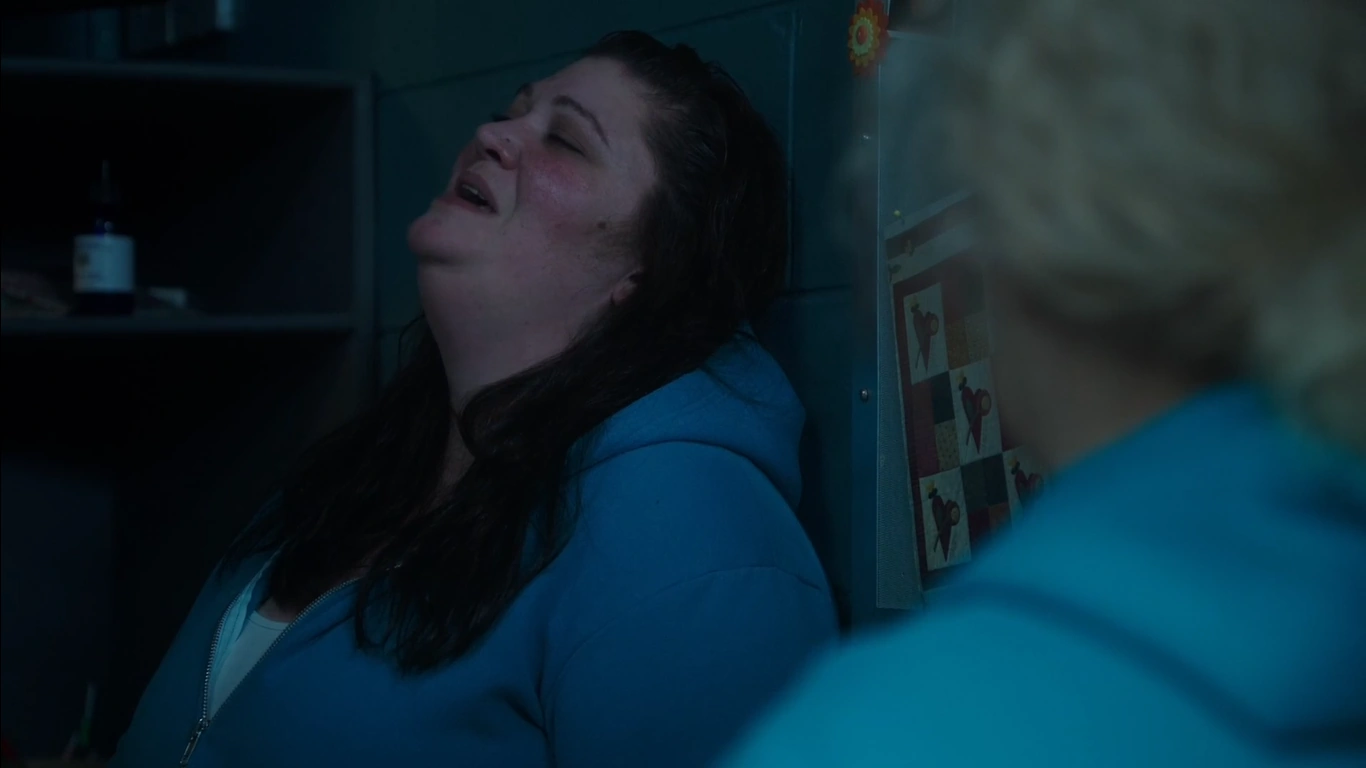 Allie goes to see if Ruby is in her cell and when she isn't there she asks Liz where she is and Liz says that Ruby is getting ready for fight club, Allie runs to find Rita and when she sees the laundry cart outside the dining room, Allie calls out to Rita as she tries to find her, Rita yells out and Allie opens the door and Rita asks where Ruby is and Allie tells her that she is at fight club, Rita rushes off with Allie behind her.