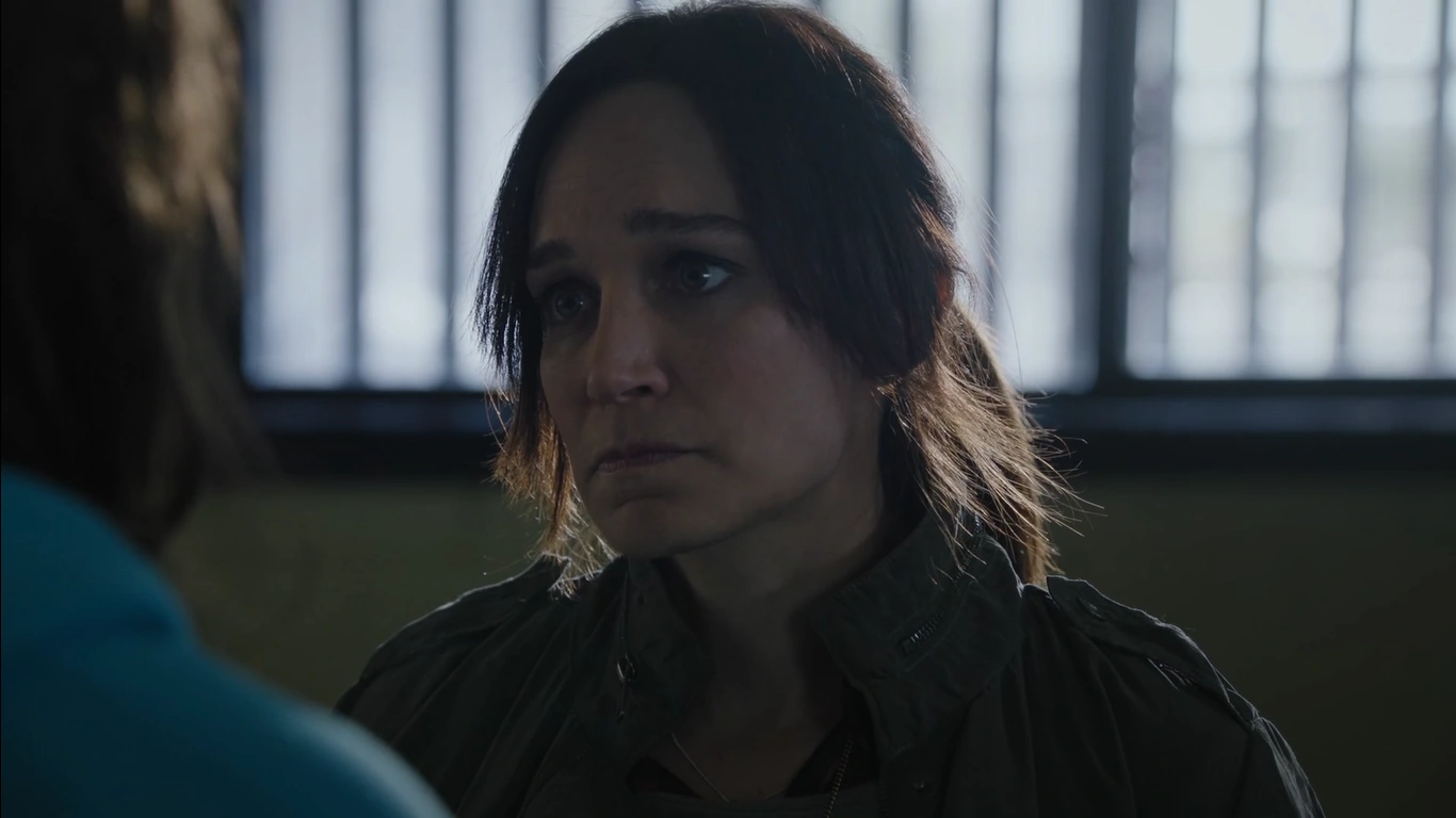 Franky’s drug-smuggling operation draws scrutiny from Governor Ferguson. She exploits a garden project to arrange a drug drop with a male inmate, who later attempts to assault her. Franky stabs him in self-defense with a garden fork. The drugs are later found in Boomer’s cell, resulting in seven more years added to her sentence. Franky is increasingly paranoid about who snitched—first targeting Doreen, then nearly strangling Bea. Liz eventually confesses, prompting a rare emotional moment where Franky admits Liz is the only person who ever cared about her.